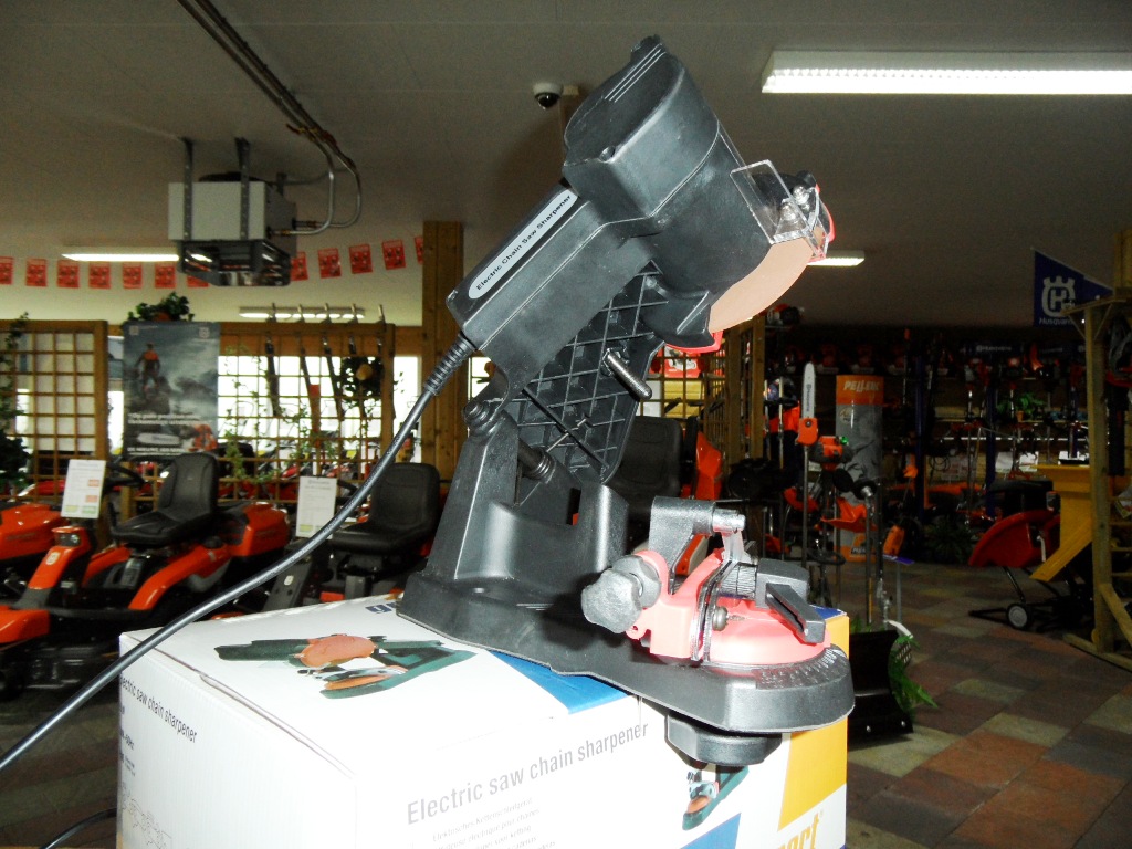 Eenvoudige zaagketting slijpmachine, slijphoek instelbaar, slijpdiepte instelbaar en slijplengte instelbaar.
