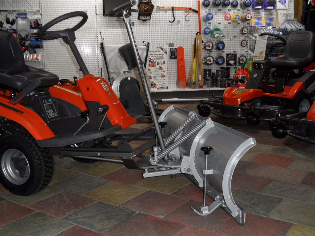 Schuifblad voor aanbouw aan Husqvarna Rider C-modellen en 200 serie, met een breedte van 120cm. Het maaidek kan door 2 bouten te demonteren losgekoppeld worden en het schuifblad kan met 2 bouten bevestigd worden, u hoeft dus niet het frame te demonteren zoals bij het “Schuifblad Consumer”.