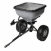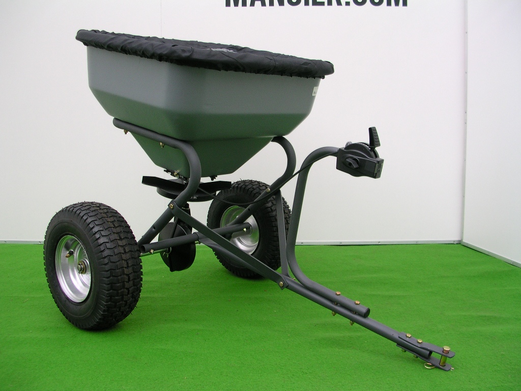 Universele strooier voor het strooien van kunstmes, zout, etc, past aan nagenoeg elke zitmaaier met trekhaak.