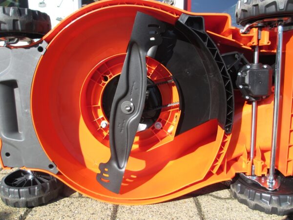Deze machine is uitgevoerd met rij-aandrijing met variabele rij-snelheid instelling in 4 standen waardoor u elke gewenste snelheid kunt lopen achter deze gazonmaaier en deze machine heeft automatische choke voor eenvoudige start!