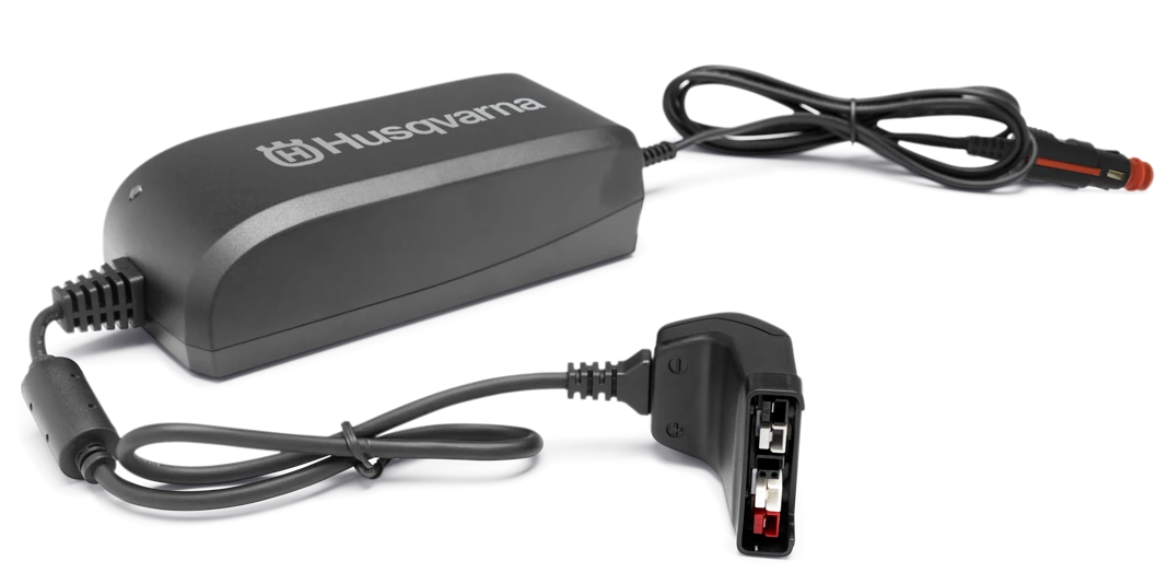 Acculader voor accu’s van Husqvarna accugereedschap. In te pluggen in de sigarettenaanstekerplug in uw auto, om via 12V de 36V Husqvarna accu’s te kunnen laden.
