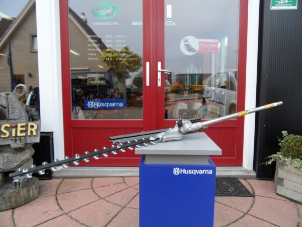 Zeer handige aankoppelbare heggenschaar, ergonomisch zeer verantwoord, doordat deze heggenschaar in combinatie met de motor in balans is, en in elke gewenste positie instelbaar is, wordt uw lichaam minimaal belast. Deze langere uitvoering is geschikt om op groter afstand te werken.