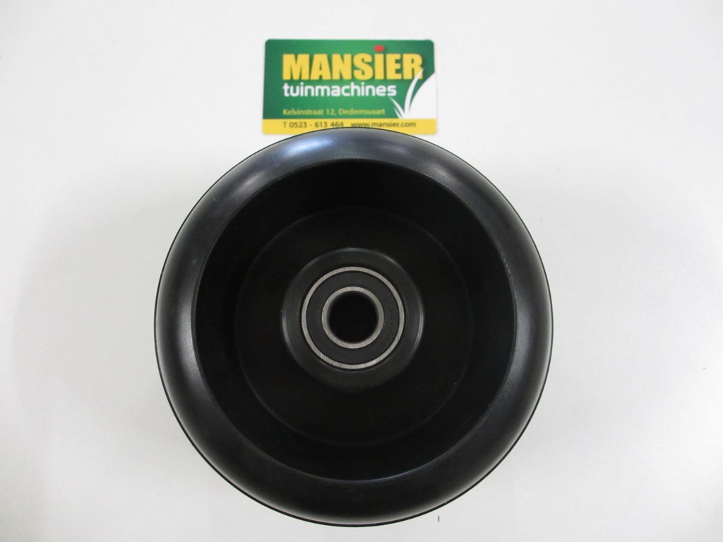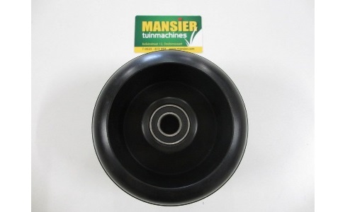 Eén kunststof loopwiel toepasbaar op alle maaidekken van de Husqvarna Rider series compleet met twee lagers.