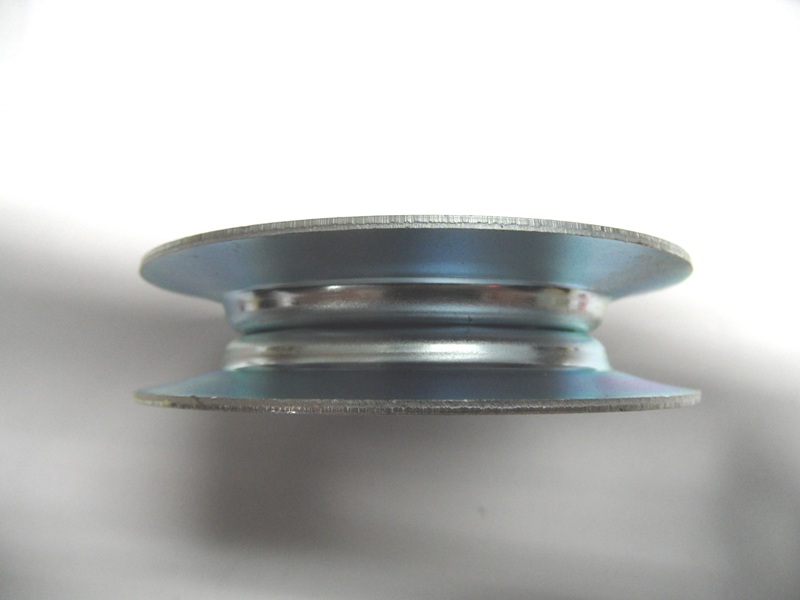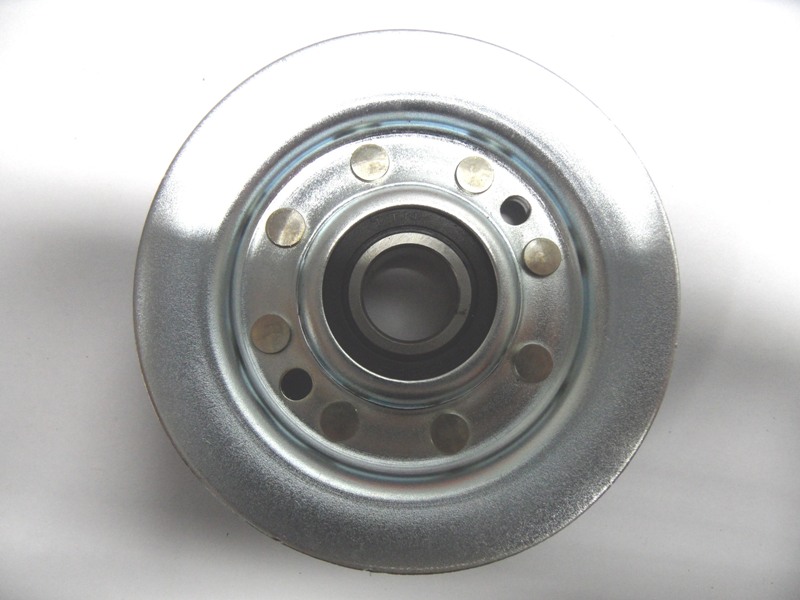 Kogelgelagerde stalen geleiderpouly voor Castel-Garden, Honda etc. zitmaaiers. Deze geleiderpouly zit op meerdere plaatsen, zowel de maaideksnaar als de transmissiesnaar wordt met deze pouly gespannen of geleid.