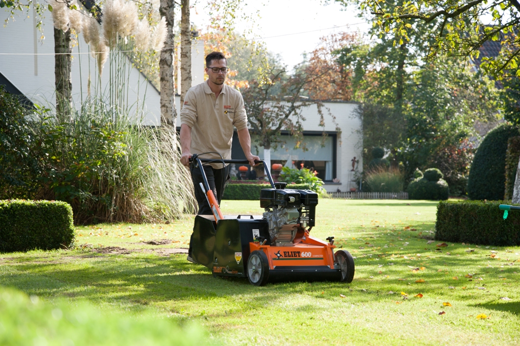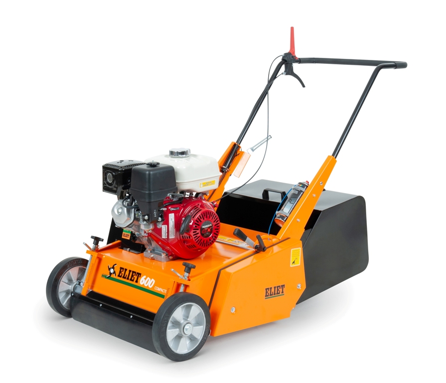 Eliet E600 DC Compactor professionele benzine verticuteemachine met dubbele messen en opvangsysteem, 60cm